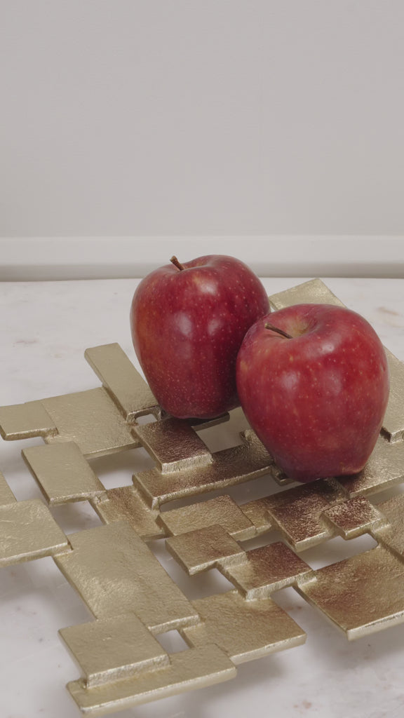 Inspired by the symmetry, the building blocks platter is made of expertly crafted gold finished aluminum. Unlike any other, the piece is sure to draw attention at your next get together. Shimmering through any old presentation, this is a must have for decor connoisseurs.