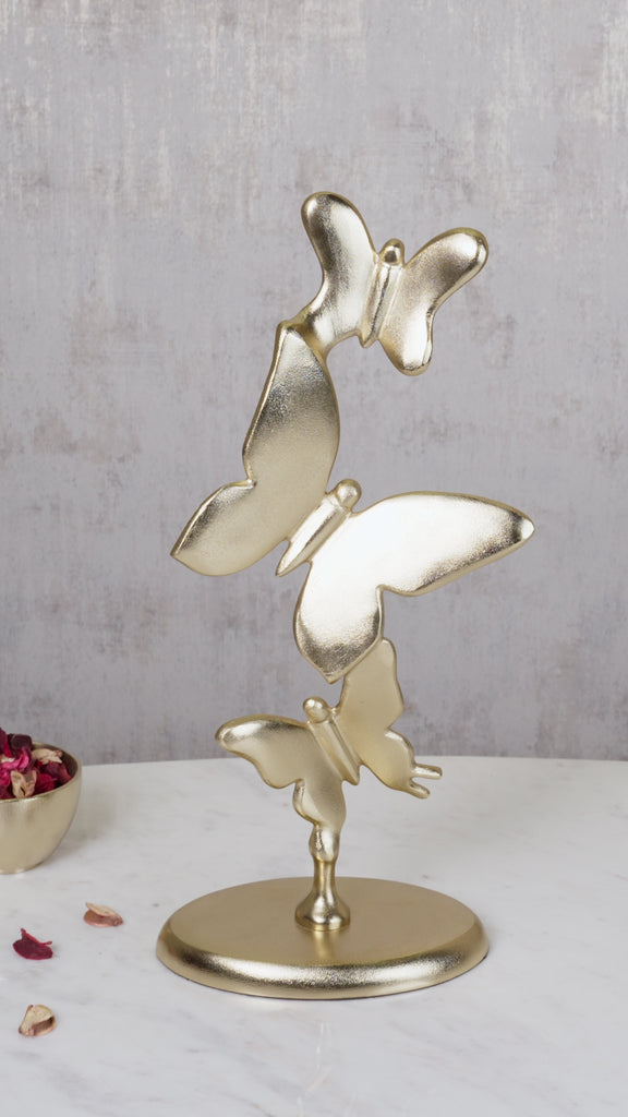 Crafted with aluminium in an opulent gold finish, these fluttering butterflies brighten up any space and immediately spread a sense of joy and playfulness to your home. Just the right decorative accessory to help you add the finishing touch to your room.