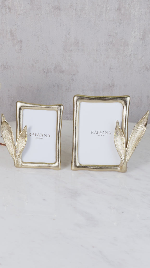 Introducing the epitome of natural elegance - the enclosed leaf photo frame, meticulously crafted from gold-finished aluminum, capturing the essence of nature's beauty while adding a touch of opulence to your cherished memories. Inspired by the delicate intricacies of leaves, this exquisite frame showcases a stunning design, meticulously etched and finished with a radiant golden hue.