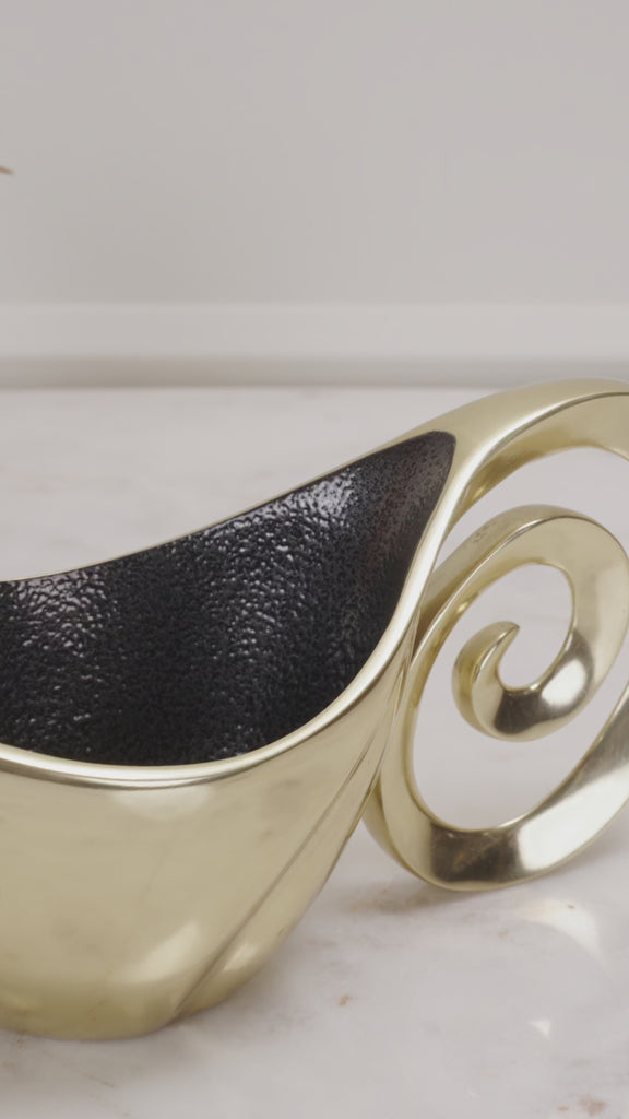 This eye catching swirl gravy boat is what you need to add as an essence of high fashion at your next dinner. Its gold finished aluminium gives it a contemporary look and adds to any taste in decor.