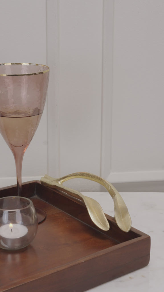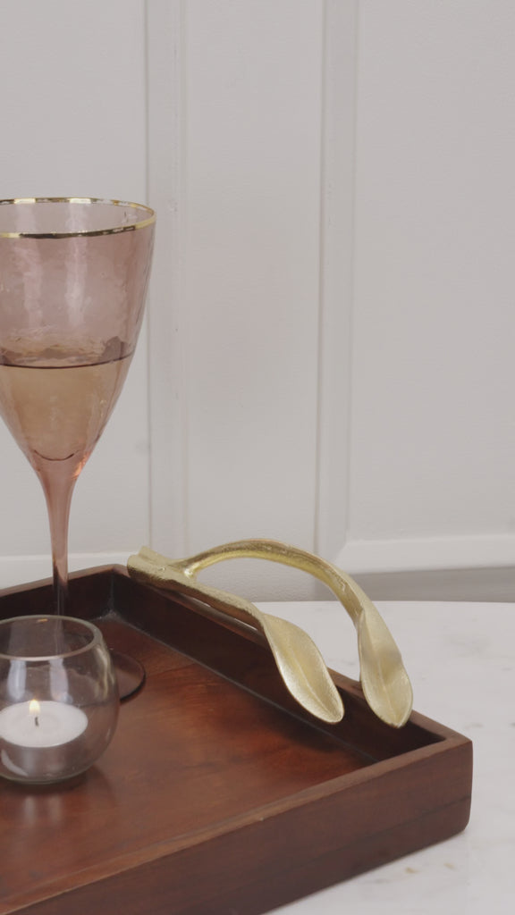Delight your family and friends with this stunning wooden serving tray. Expertly crafted of wood and gold polished aluminium handles for a perfect grip, this serving tray is a great way to impress any guest.